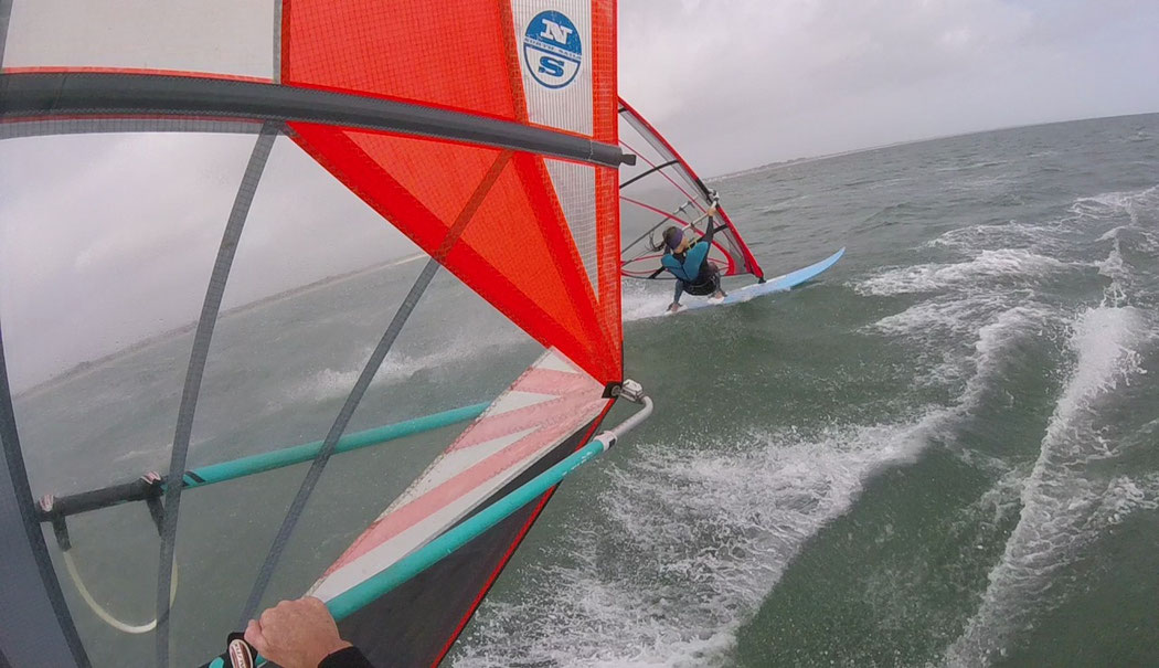 Nous pouvons naviguer ensemble en planche entre 18 à 28 nds sur un des multiples spots de notre côte, de Septembre à Juin.